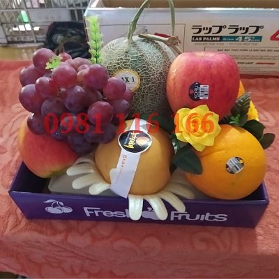 Nếu như các mẫu dùng 1 loại quả như phía trên khá đơn giản thì khi kết hợp từ 2 loại quả trở lên sẽ yêu cầu bạn 1 chút tỷ mỷ và có khiếu thẩm mỹ, làm thế nào để hài hòa màu sắc giữa các loại quả cũng như khay giấy đựng.