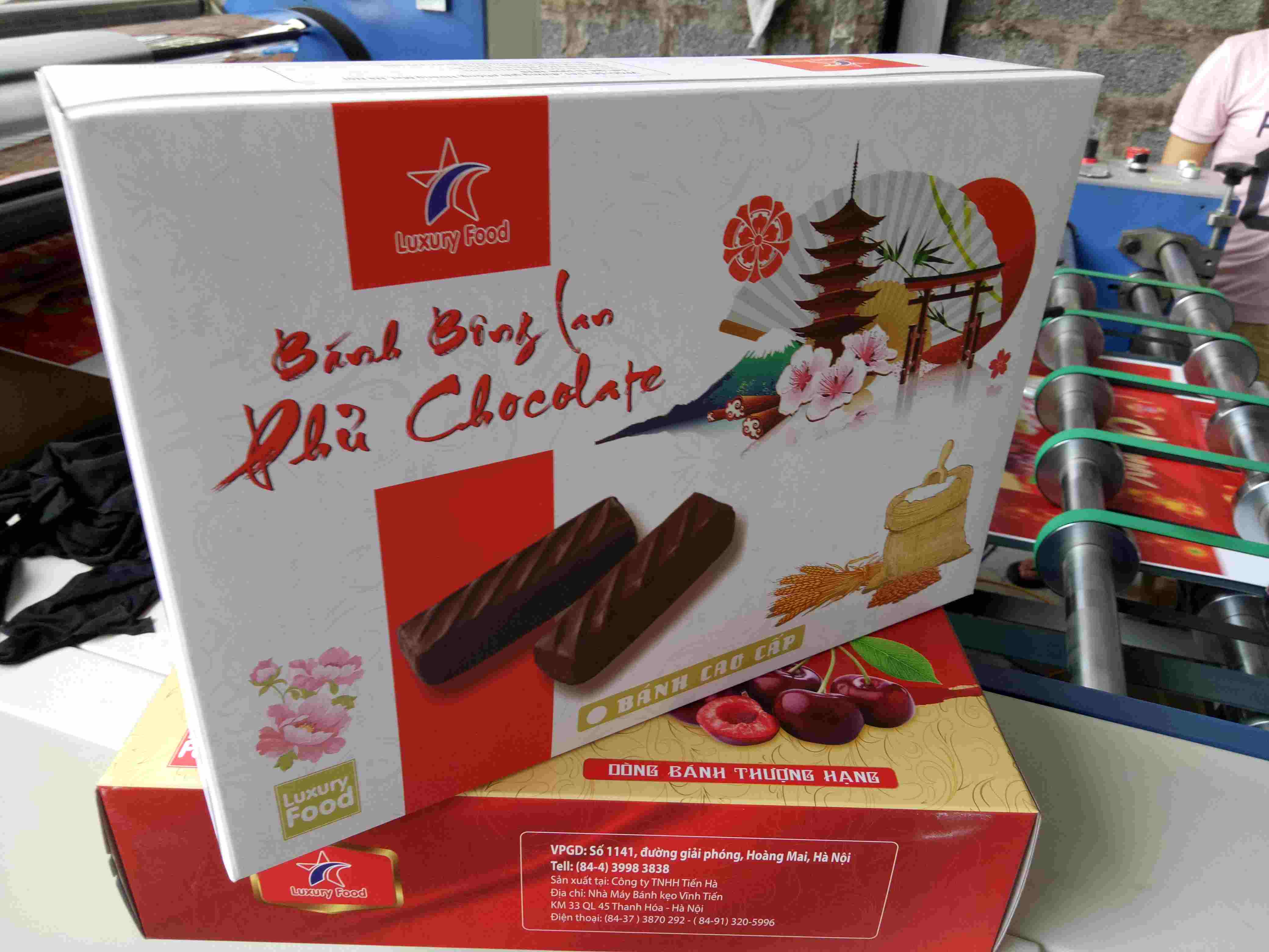 Lời khuyên: bạn nên cán lớp màng nilon thực phẩm để tăng khả năng chống thấm, chống dầu mỡ và tránh khả năng bánh dính vào hộp làm hỏng bánh.