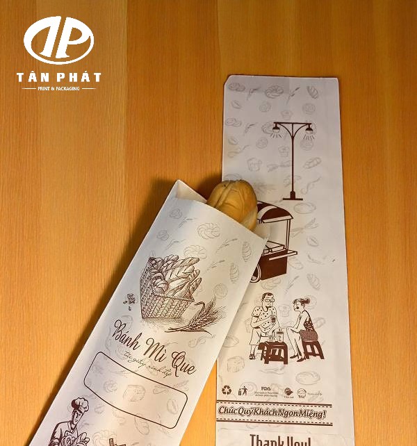 Gợi ý: Xưởng in Tân Phát là một trong những đơn vị uy tín chuyên cung cấp túi giấy đựng bánh mì que số lượng lớn cho chuỗi cửa hàng, startup F&B, bánh mì take-away…